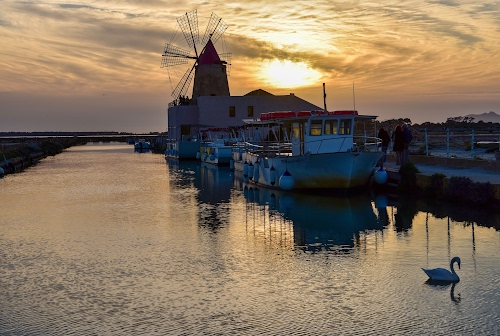 Foto dell'autore Diana Cocco candidata al contest fotografico mulini su Dizy. Data inserimento: mercoledì 9 luglio 2025. Titolo: Tramonto ai Mulini delle saline di Marsala