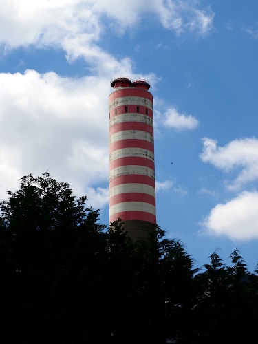 Foto dell'autore piadvc candidata al contest fotografico ciminiere su Dizy. Data inserimento: mercoledì 23 luglio 2025. Titolo: Ciminiera industriale a righe bianchee rosse