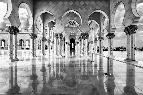 Foto dell'autore Diana Cocco candidata al contest fotografico monocromatico su Dizy. Data inserimento: mercoledì 4 marzo 2026. Titolo: MONOCROMATICO: Gran moschea ad Abu Dhabi